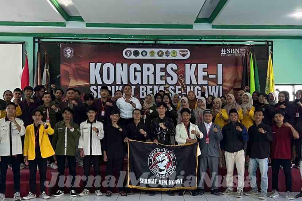 Ngawi (JurnalMediaNusa) – Kolektif mahasiswa di Kabupaten Ngawi mengambil langkah strategis dengan mendeklarasikan Serikat BEM Se-Kabupaten Ngawi. Deklarasi tersebut berlangsung dalam Kongres I di Aula Institut Agama Islam (IAI) Ngawi, sekaligus menetapkan Dimas Aradhea Wibowo sebagai Koordinator Daerah (Korda) periode 2026/2027.