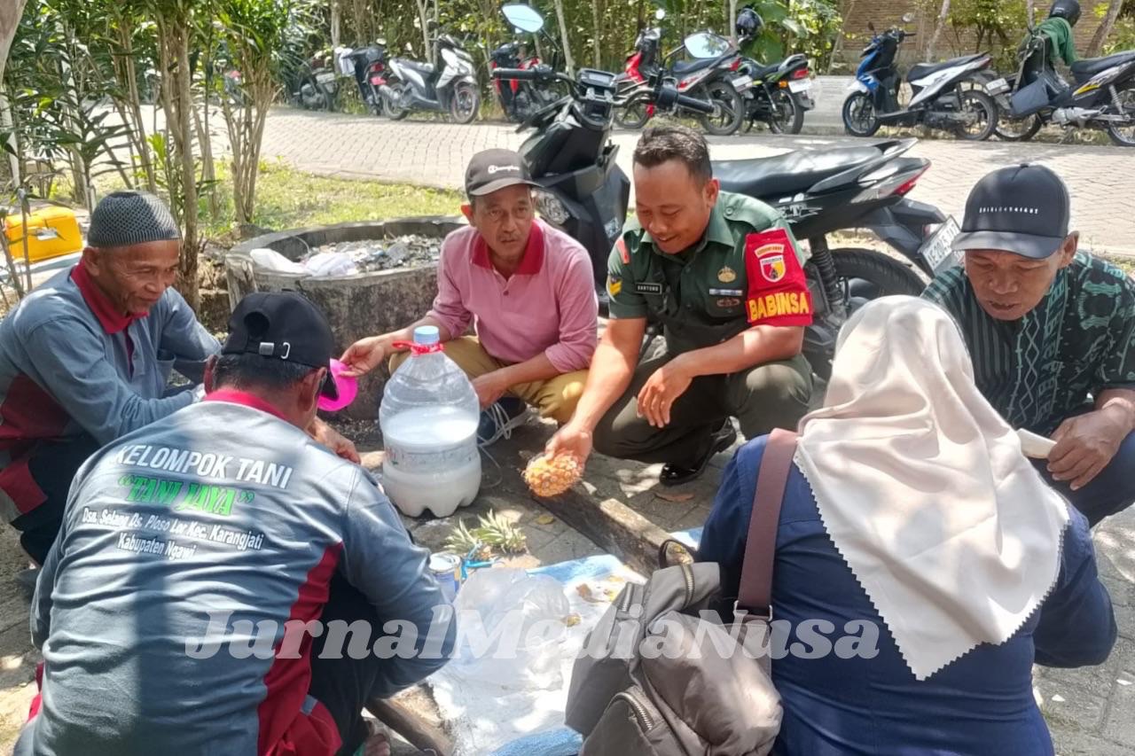 Babinsa Koramil Karangjati bersama PPL memberi pelatihan pembuatan pupuk organik kepada petani Desa Ploso Lor, Ngawi. (Dok.JurnalMediaNusa)