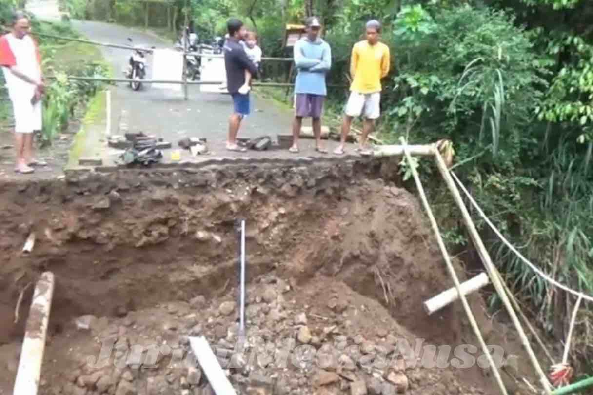“Hujan deras terjadi kemarin. Kondisi jembatan memang sudah retak, lalu pagi tadi akhirnya ambrol. Sekarang warga harus memutar lebih dari dua kilometer untuk beraktivitas,” ujarnya.