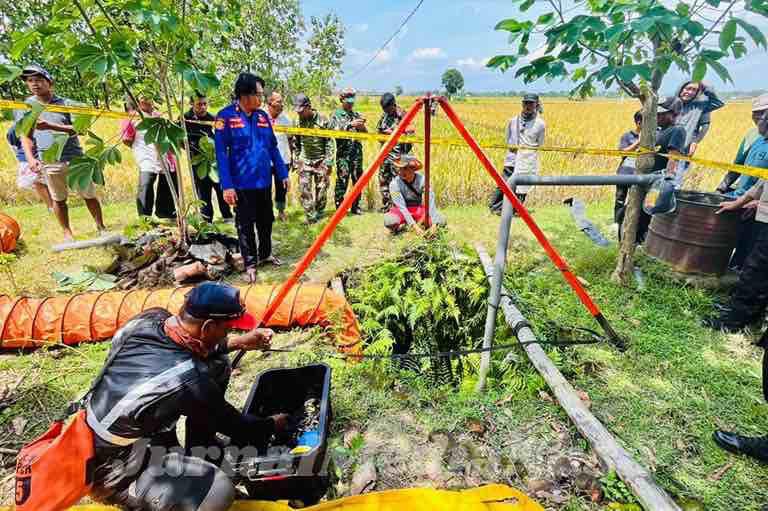 Petugas gabungan bersama warga mengevakuasi korban dari dalam sumur sedalam lima meter di area persawahan Desa Tepas, Kecamatan Geneng, Kabupaten Ngawi. (Dok.JurnalMediaNusa)
