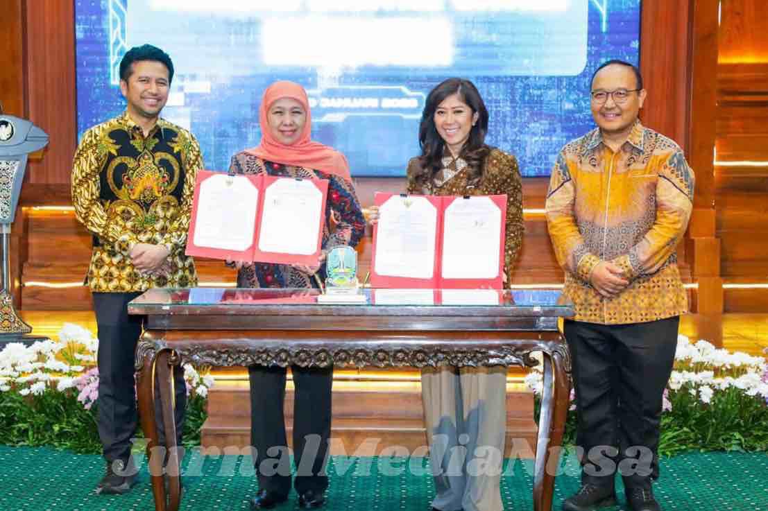Gubernur Khofifah Indar Parawansa bersama Menkomdigi Meutya Hafid meresmikan Program Talenta Digital Jatim Mendunia di Surabaya, Jumat (30/1). (Dok.JurnalMediaNusa)