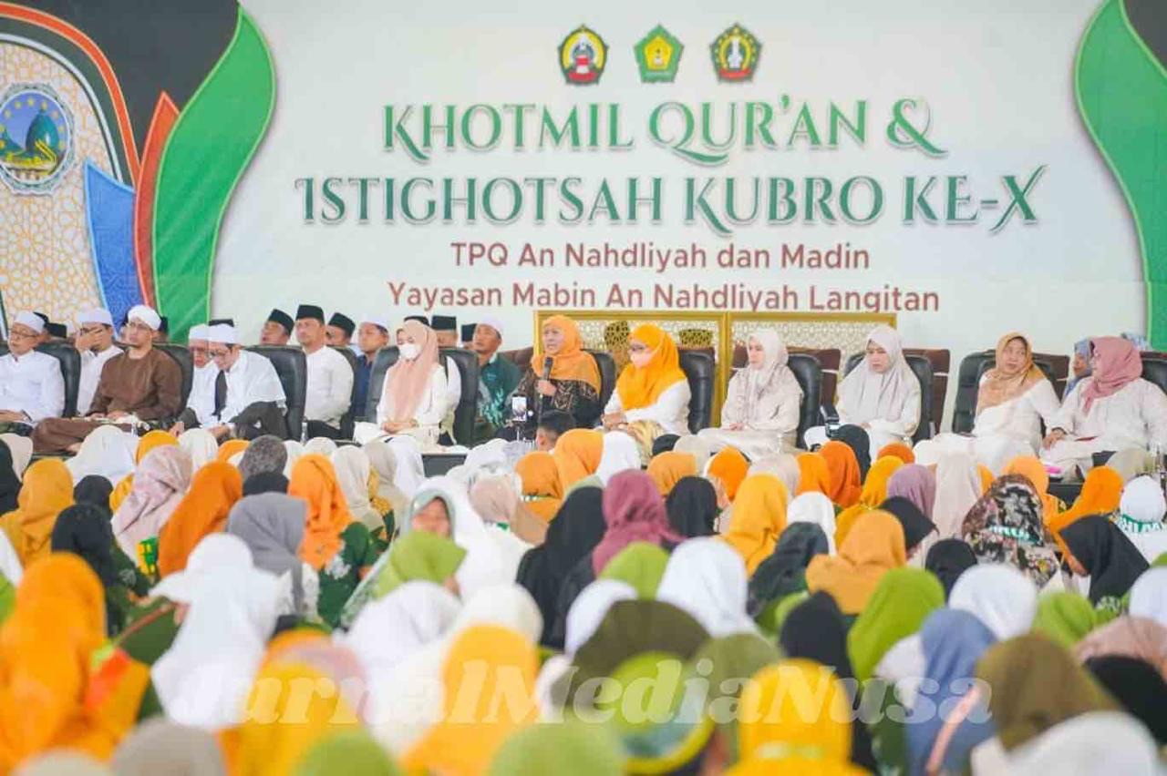Surabaya (JurnalMediaNusa) – Gubernur Jawa Timur Khofifah Indar Parawansa menegaskan peran ulama, pondok pesantren, dan umara sebagai pilar utama kekuatan Jawa Timur. Penegasan tersebut disampaikan saat menghadiri Khotmil Qur’an dan Istighotsah Kubro ke-10 Yayasan Mabin An-Nahdliyah Langitan di Masjid Nasional Al-Akbar Surabaya, Selasa (30/12/2025).