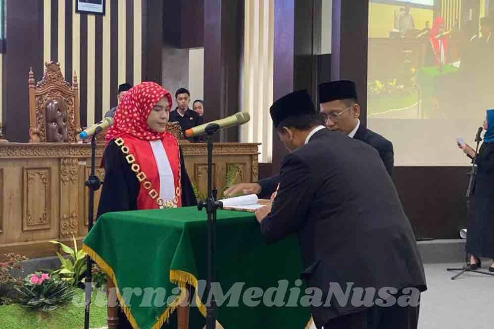 Prosesi pelantikan pejabat DPRD Ngawi berlangsung khidmat saat pejabat terkait menandatangani berita acara di hadapan pimpinan sidang. (Dok.JurnalMediaNusa)