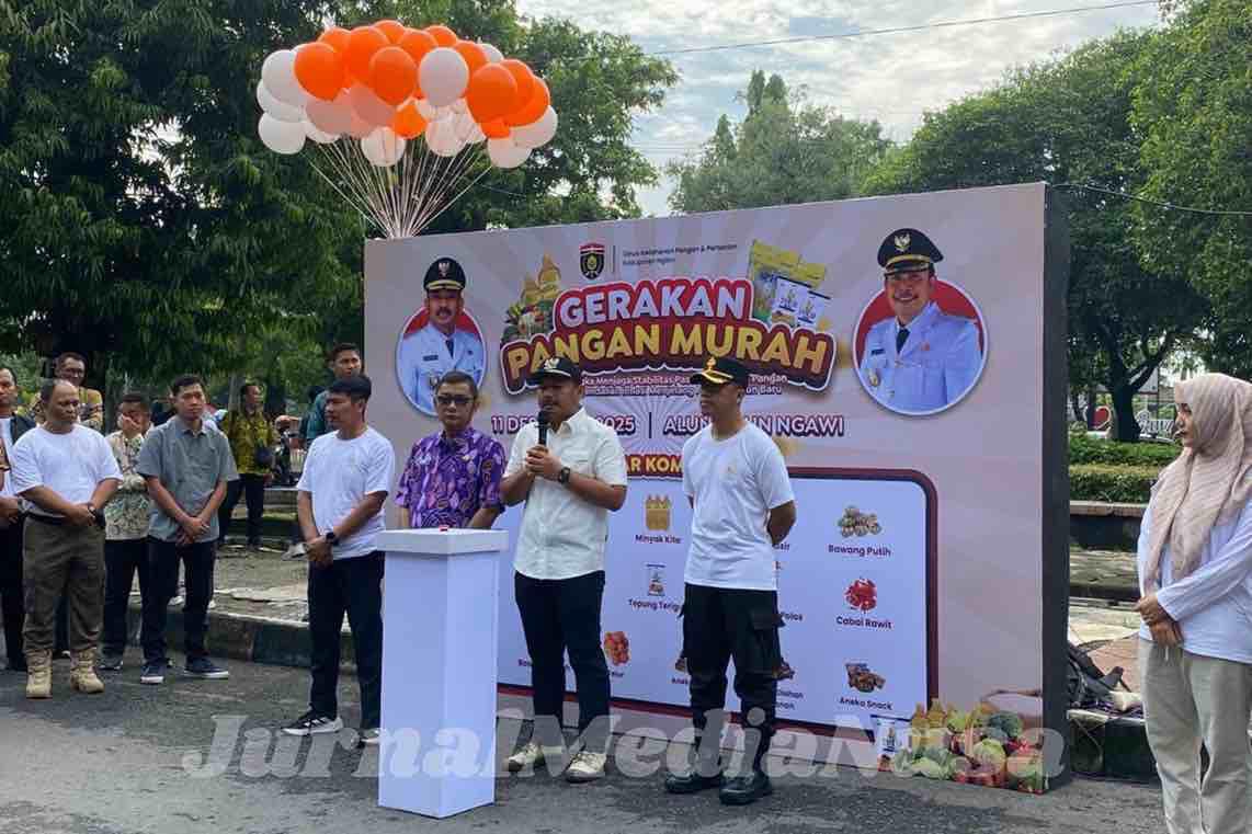 Bupati Ngawi Ony Anwar Harsono membuka Gerakan Pangan Murah di Alun-Alun Ngawi, Kamis (11/12/2025). (Dok.JurnalMediaNusa)