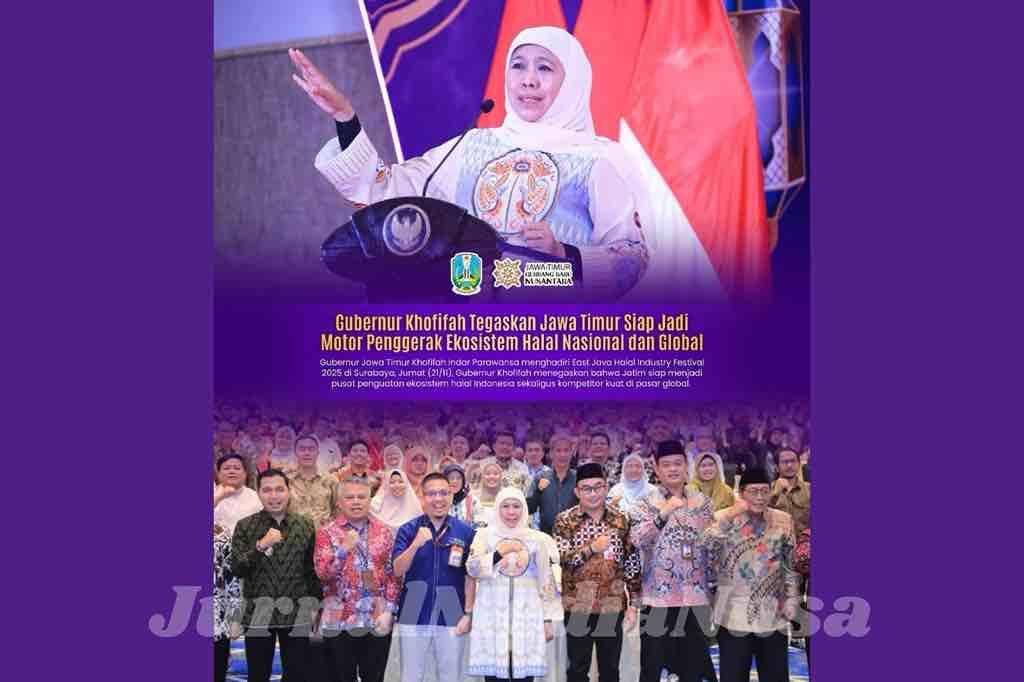 Surabaya (JurnalMediaNusa) – Gubernur Jawa Timur Khofifah Indar Parawansa menyatakan optimismenya bahwa Jawa Timur siap tampil sebagai motor penggerak ekosistem dan industri halal nasional hingga global. Hal itu ia sampaikan saat menghadiri East Java Halal Industry Festival 2025 di Hotel Novotel Samator, Surabaya, Jumat (21/11).