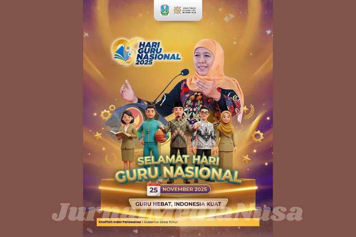 Surabaya (JurnalMediaNusa) – Peringatan Hari Guru Nasional (HGN) 2025 menjadi momentum bagi Gubernur Jawa Timur Khofifah Indar Parawansa untuk menyampaikan apresiasi mendalam kepada seluruh guru di Jawa Timur. Berdasarkan data BPS Jatim per 5 Februari 2025, jumlah guru di Jatim mencapai 345.454 orang, terdiri dari 181.940 guru SD, 79.888 guru SMP, 34.987 guru SMA, dan 48.639 guru SMK.