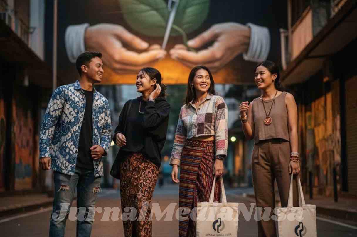 Generasi muda tampil percaya diri mengenakan busana wastra nusantara dengan sentuhan modern. Dengan memadukan gaya kasual dan ramah lingkungan sebagai cerminan tren fashion masa kini yang berkelanjutan. (Dok.JurnalMediaNusa)