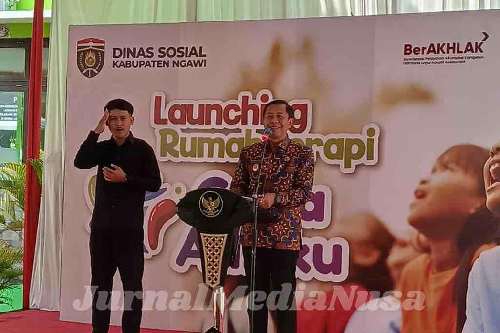 Ngawi (JurnalMediaNusa) — Pemerintah Kabupaten Ngawi terus meningkatkan kualitas pelayanan publik, salah satunya lewat peresmian Rumah Terapi Ceria Adikku pada Kamis (4/12/2025). Acara launching berlangsung di halaman fasilitas baru tersebut yang berdampingan dengan kantor Dinas Sosial Kabupaten Ngawi.