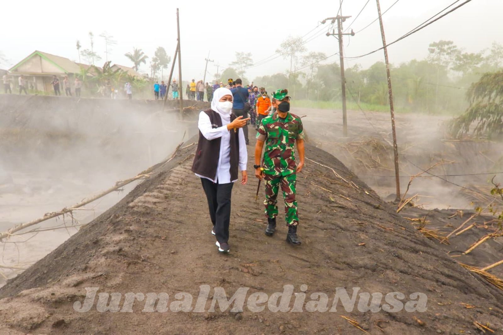 Gubernur Jawa Timur bersama TNI meninjau area terdampak erupsi Gunung Semeru yang masih diselimuti material vulkanik. (Dok.JurnalMediaNusa)