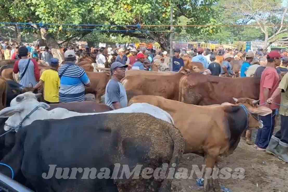 Aktivitas di pasar hewan Kabupaten Ngawi yang kini dalam pengawasan ketat menyusul temuan 23 kasus baru PMK pada awal 2026. (Dok.JurnalMediaNusa)
