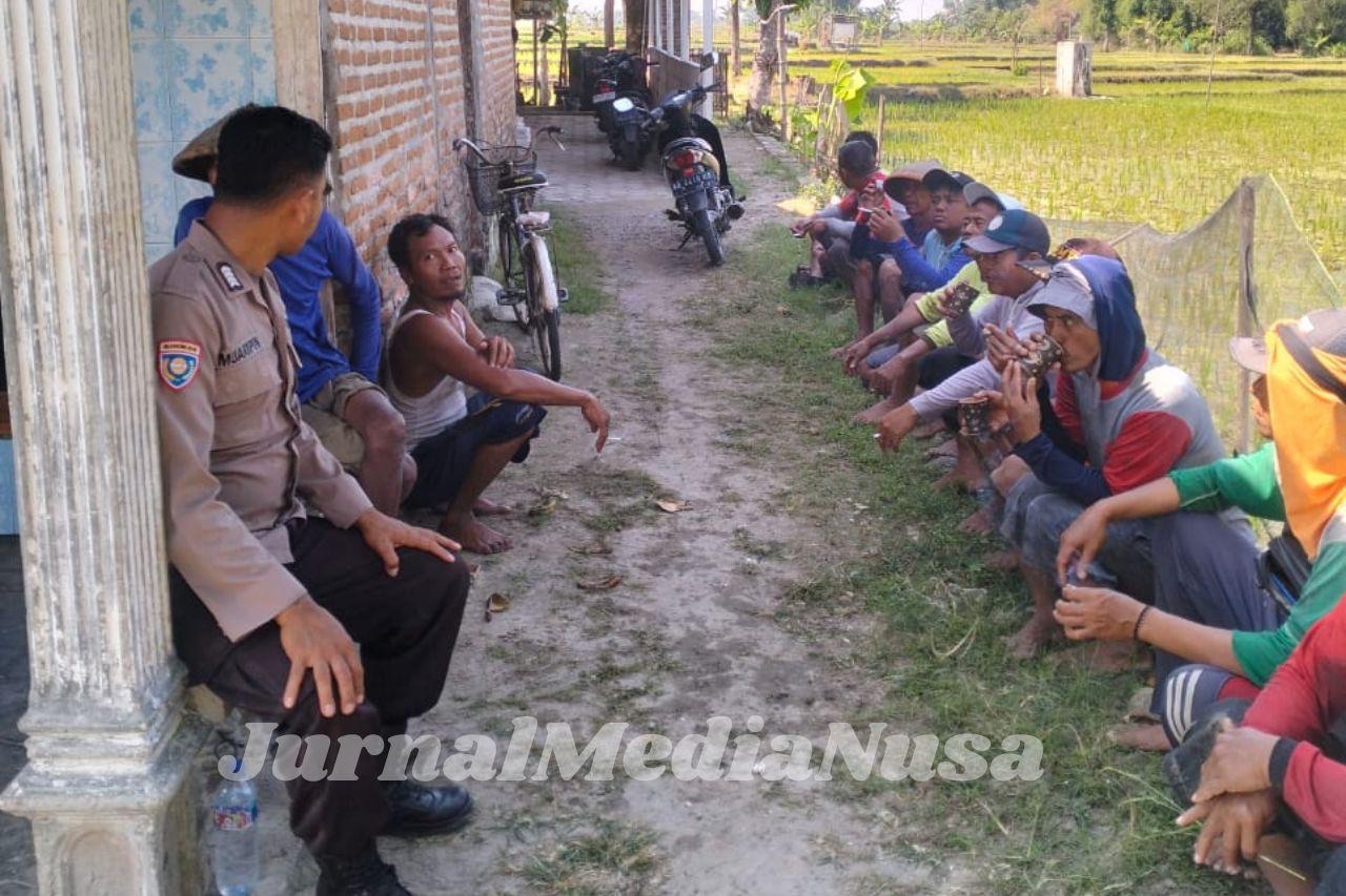 Petugas Polsek Pangkur ngobrol santai bersama warga di persawahan Dusun Waruktengah untuk sosialisasi kamtibmas. (Dok.JurnalMediaNusa)