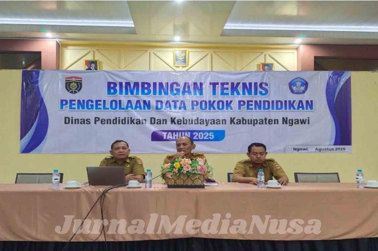 Ngawi (JurnalMediaNusa) – Dinas Pendidikan dan Kebudayaan Kabupaten Ngawi menggelar Bimbingan Teknis (Bimtek) Pengelolaan Data Pokok Pendidikan (DAPODIK) selama empat hari, Selasa hingga Jumat, 19–22 Agustus 2025. Kegiatan ini berlangsung di Rumah Makan Notosuman, Watualang, Ngawi, dan diikuti ratusan operator sekolah dari jenjang SD hingga SMP.
