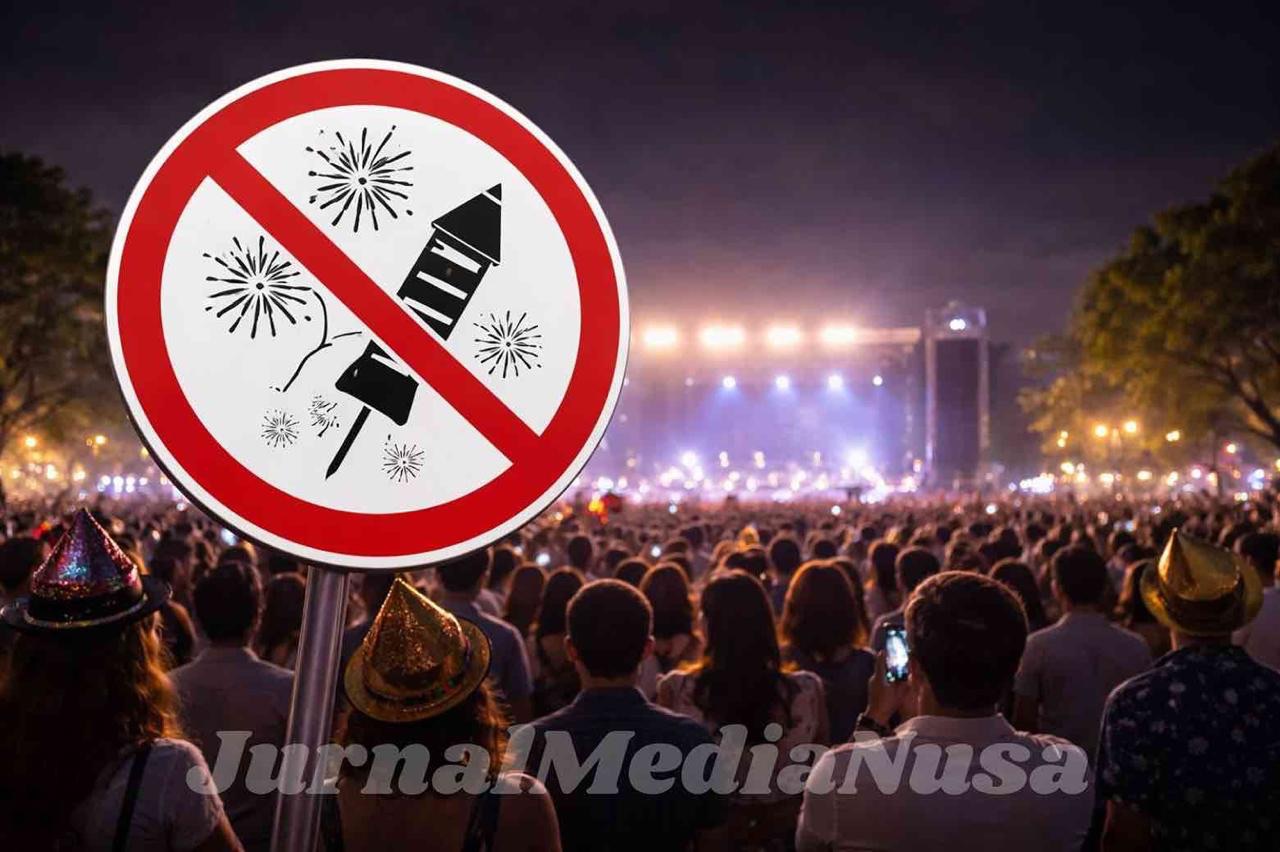Ilustrasi larangan pesta kembang api pada malam Tahun Baru. Wujud dari simbol ajakan refleksi dan kepedulian sosial di tengah peringatan pergantian tahun. (Dok.JurnalMediaNusa)