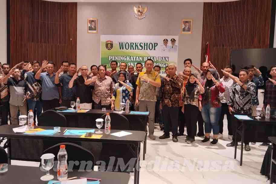 Para peserta Workshop Blending Rokok foto bersama usai sesi materi di Nata Hotel Ngawi, Jumat (14/11/2025). Kegiatan ini digelar DPPTK Ngawi untuk mendorong inovasi dan peningkatan kualitas industri rokok lokal. (Dok.JurnalMediaNusa)